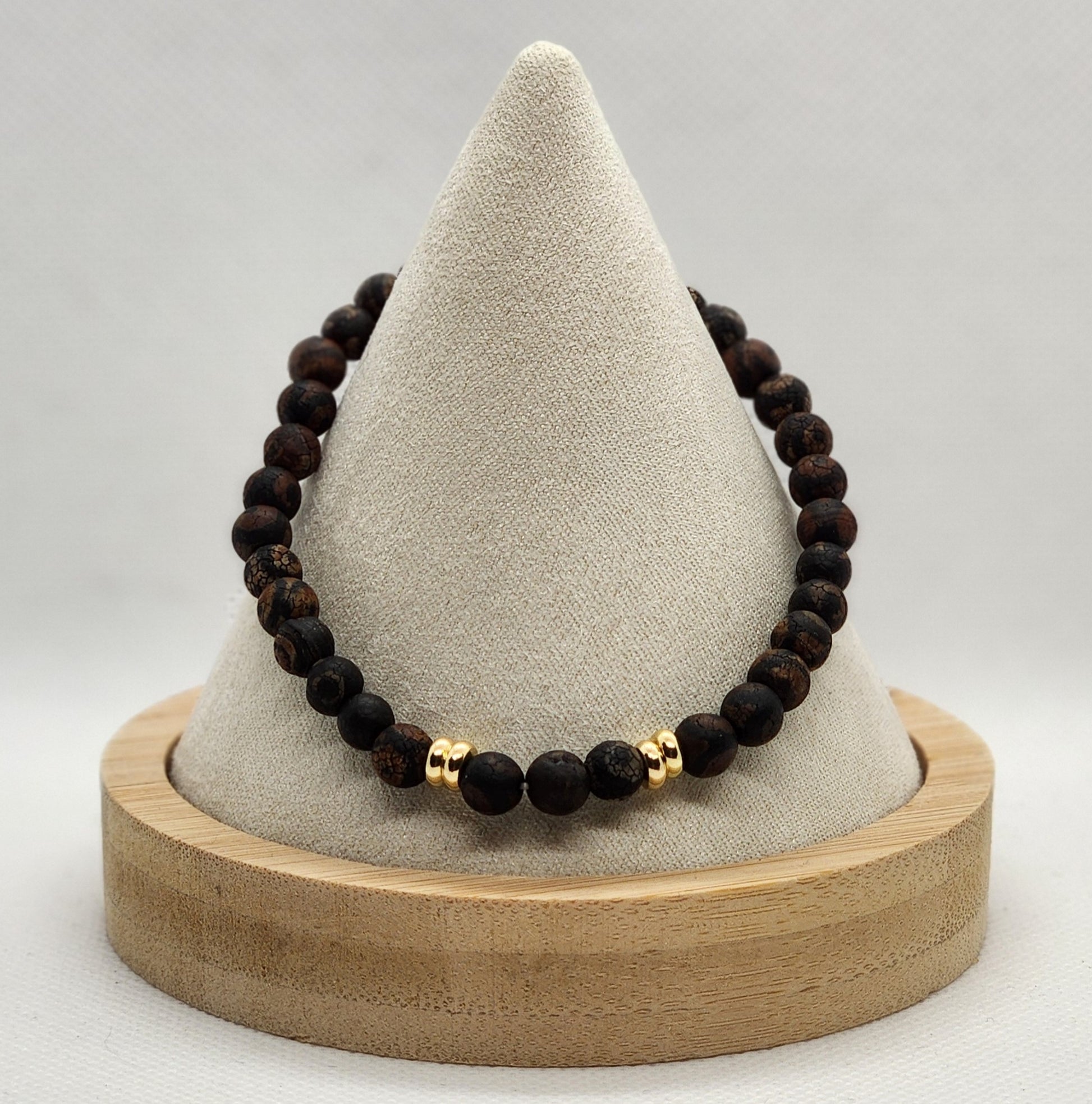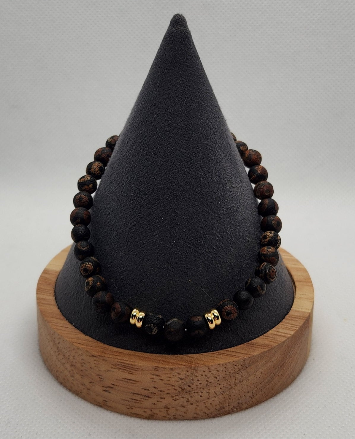 8 inches of Tibetan blackened beads with gold plated disc spacers