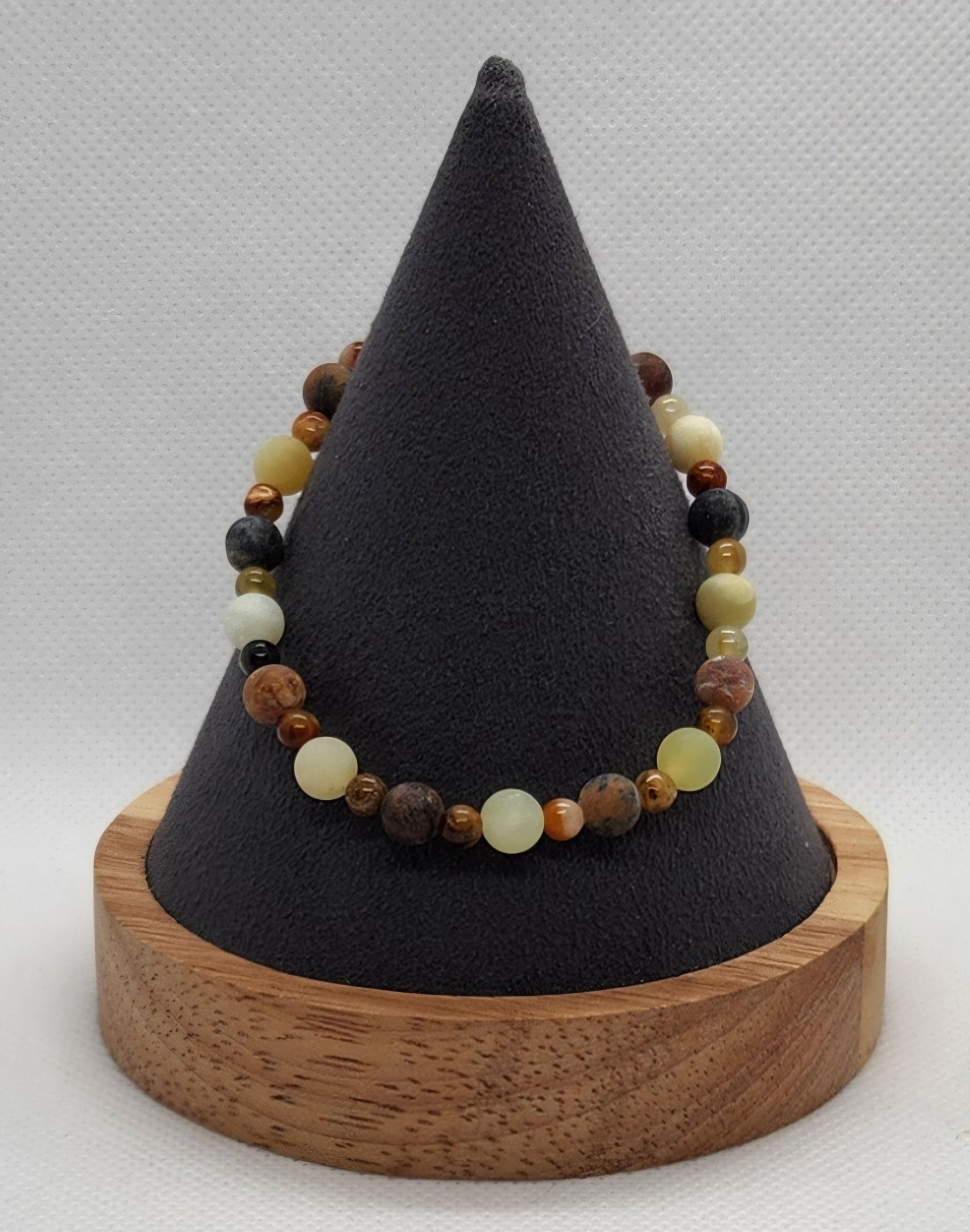 7.5 inches of flower jade in a mixed of sizes with both matte and smooth stones.